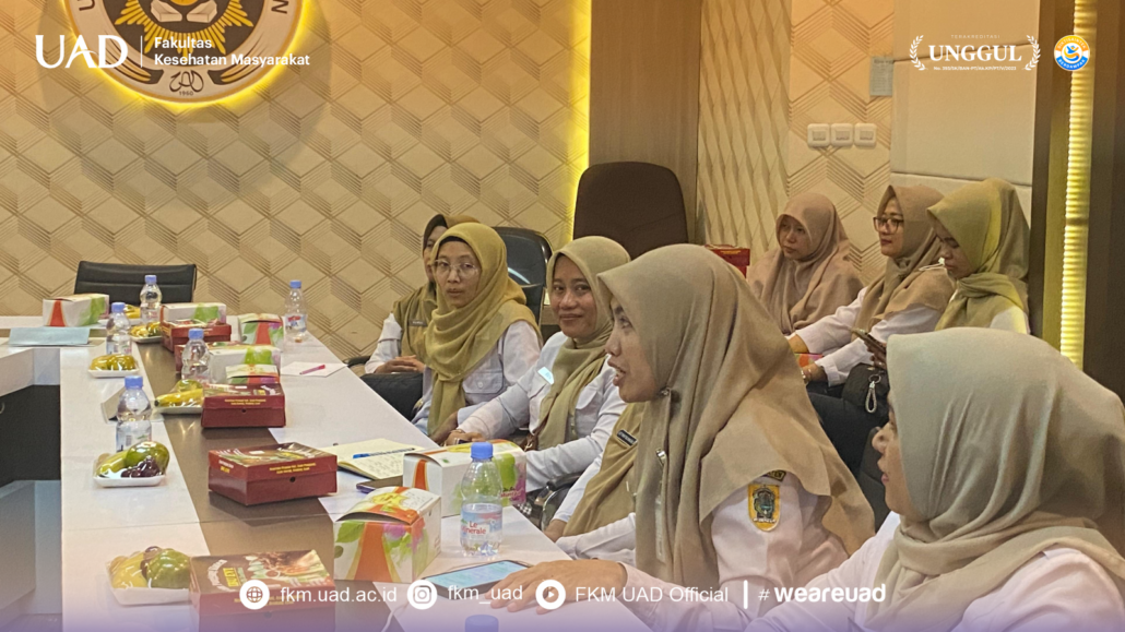 Fakultas Kesehatan Masyarakat Universitas Ahmad Dahlan (FKM UAD) menerima kunjungan dari Dinas Kesehatan Kabupaten Klaten dalam rangka silaturahmi dan penguatan kerja sama di bidang kesehatan masyarakat pada hari Rabu, 26 November 2025 mulai pukul 13.00-15.30 WIB. Kegiatan ini dilaksanakan di Smartroom Kampus 1, Universitas Ahmad Dahlan, JI. Kapas No. 9, Semaki Yogyakarta dan dihadiri oleh perwakilan Kepala Dinas Kesehatan Kabupaten Klaten, Kepala Bidang SDK (Nur Bandiyah, ST, MSi), Kepala Bidang Pelayanan Kesehatan (dr.Ahyar Arifin), Ketua Pokja di Bidang Pelayanan Kesehatan, serta Dekan FKM UAD, Wakil Dekan Bidang AIK, Akademik dan Kemahasiswaan (FKM), Wakil Dekan Bidang SDM dan KKAU (FKM), PSMF (FKM), Kepala Kantor Fakultas (FKM), dan Nur Rohman, S.T