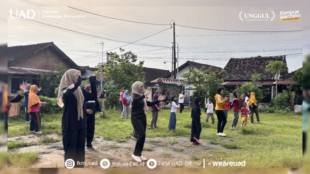 Yogyakarta, 18 Januari 2026 — Mahasiswa Pengalaman Belajar Lapangan (PBL) Fakultas Kesehatan Masyarakat (FKM) Universitas Ahmad Dahlan (UAD) Tahun Akademik 2025/2026 Kelompok 10, 11, dan 12 melaksanakan Program Germas Ceria (Gerakan Masyarakat Ceria) sebagai bentuk intervensi kesehatan berbasis masyarakat. Kegiatan ini dilaksanakan pada Minggu, 18 Januari 2026, bertempat di lapangan samping pos keamanan lingkungan RT 09 Wonocatur, Kecamatan Banguntapan, Kabupaten Bantul.